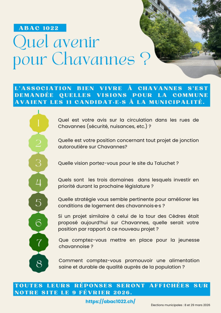 Nous pensons que la politique communale est l’affaire de toutes et tous et que bien vivre à Chavannes commence par bien comprendre l’offre de futur qui nous est proposée.